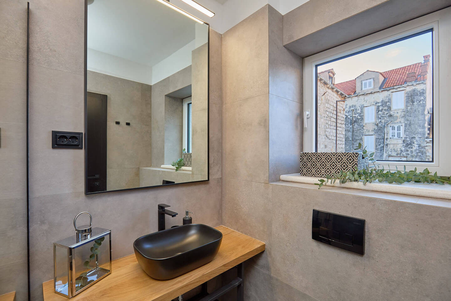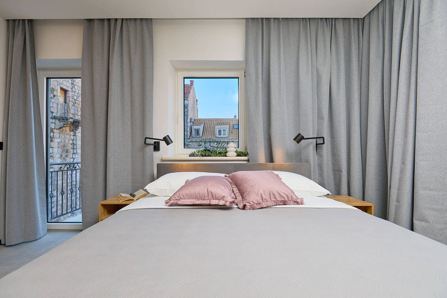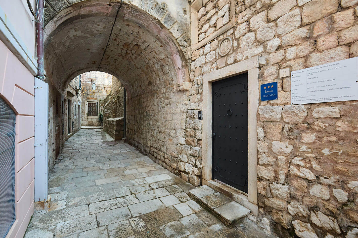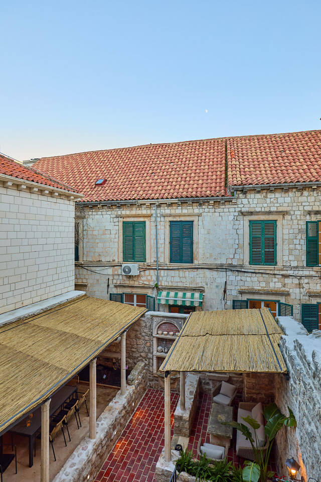 This beautiful, authentic, old stone luxury villa is a true Grande Dame of Dubrovnik. It will appeal to those who wish to experience the way of life in Dubrovnik centuries ago aided by modern technology of WiFi and air conditioning. . Thick stone walls, lovely hand carved pillars, shady terraces allow you to live like a Dubrovnik nobleman of the past but you can step out and be straight on the street where all is happening. Inside, the house has been very well modernised and is very relaxing, including air-conditioning and WiFi. This luxury holiday home consists of a four-bedroom main house for 8 guests with four bathrooms (one has a bath tub), and an additional one-bedroom apartment for 2 guests with a private bathroom which is on the grund floor.