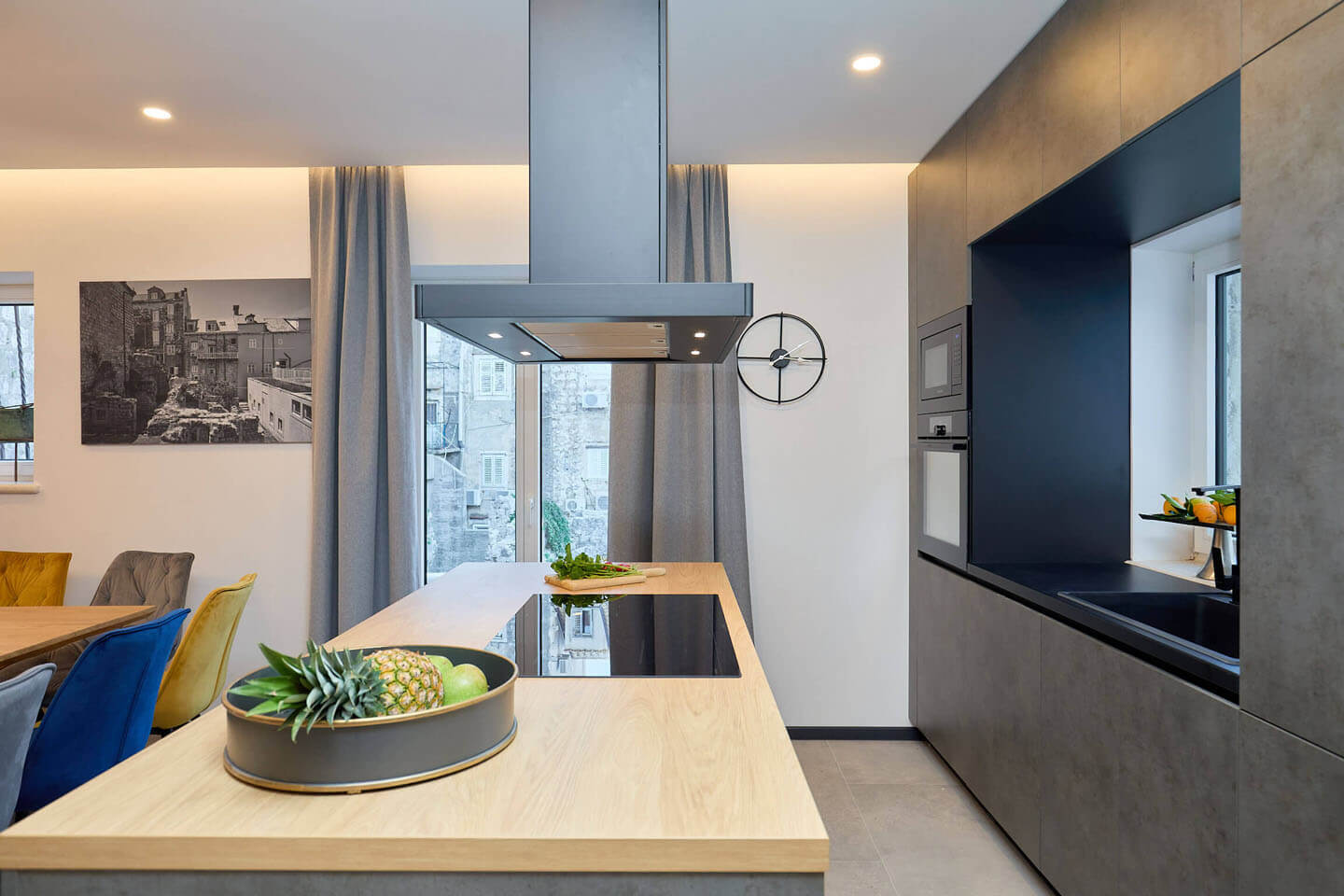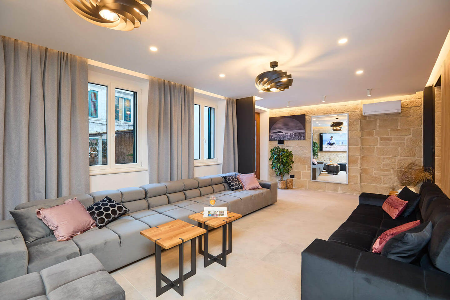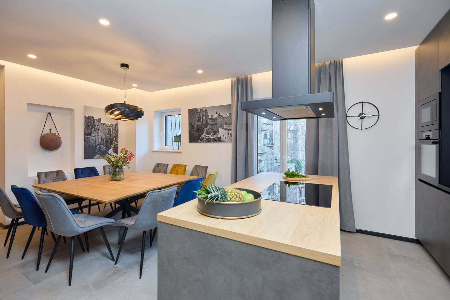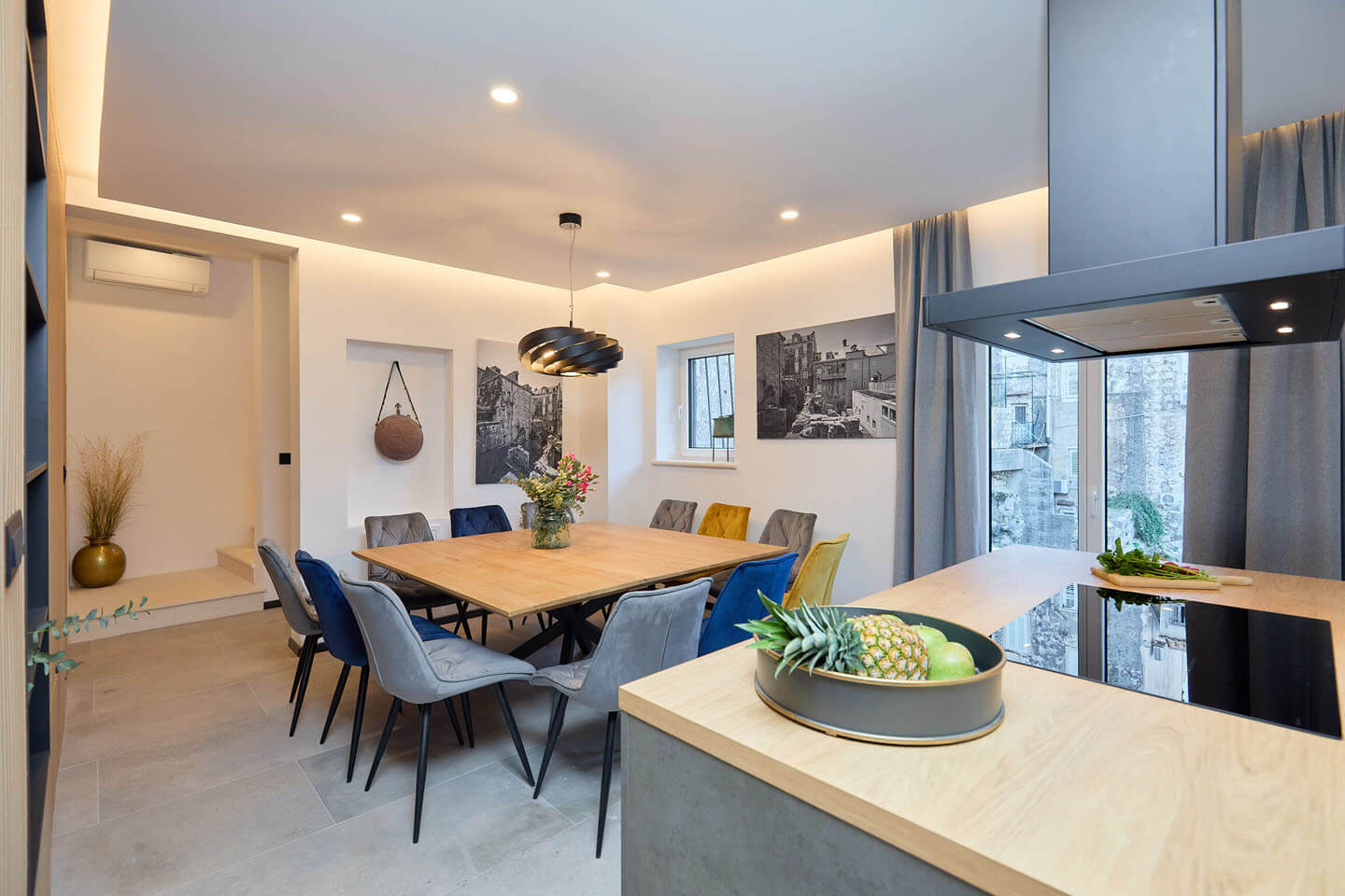 This luxury holiday home in the centre of the Old Town is a rarity, especially because it has 5 double, air conditioned, bedrooms and outdoor terraces where you can unwind in the midst of the vibrant and busy city. On the two outdoor covered terraces you will find a dining table and a barbecue and separately, a lovely and cosy sitting area with a coffee table.