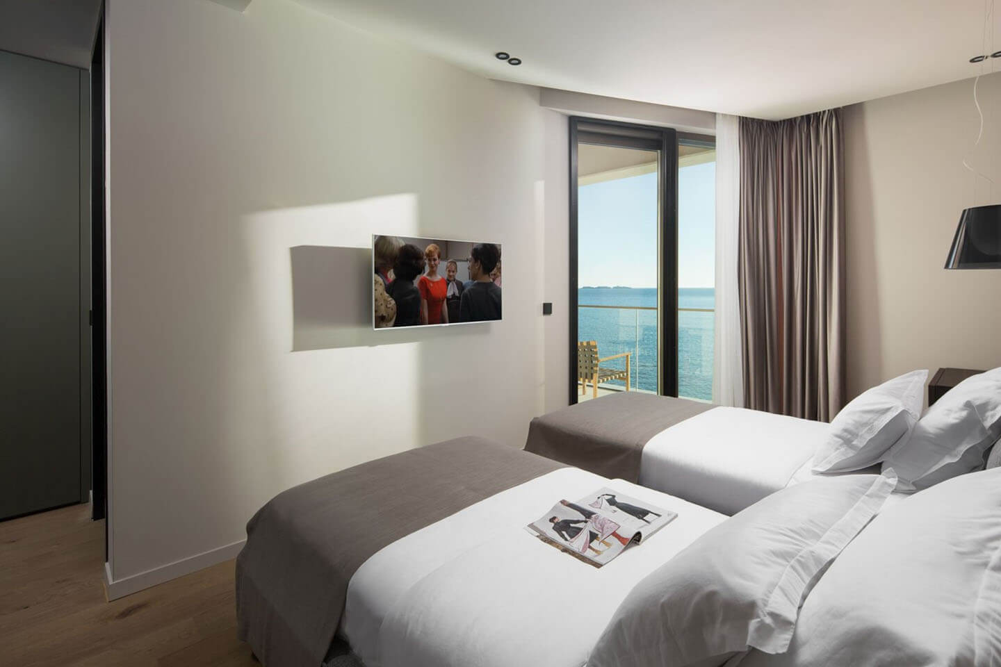 One of the most beautiful modern villas In Dubrovnik is the luxury villa Ansara with private pool, five bedrooms, five bathrooms, in seafront position just two metres from the sea. The gorgeous villa is thoroughly modern and yet full of character which makes your stay there feel like living in a bright and magical floating palace, fabulous materials and furniture enhancing the luxury experience. With its own sea entrance, this luxury Dubrovnik villa with heated infinity pool and Mediterranean plants provides peace and privacy due to its location just outside of Dubrovnik, in the village of Zaton. There you will find beaches, beachfront restaurants and bars in an understated but classy environment and have an opportunity for boat trips to the nearby islands which are a must see. The villa is very spacious comprising 630 square metres of living space spread over three floors reached by an elevator. The villa is fully air conditioned and has a WiFi and plenty of parking.