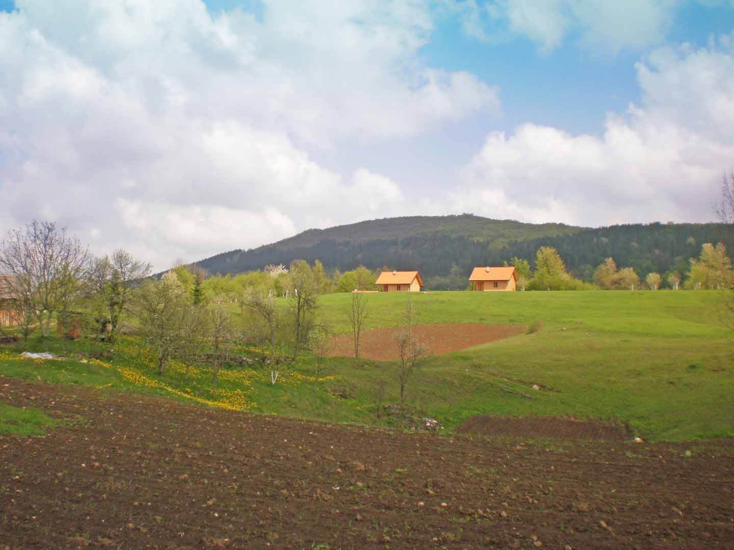 A very pretty valley road with fantastic green scenery leads you to two gorgeous, wooden cottages (45 square metres each), nestling in several acres of their organic gardens and orchards. This quiet and restful place is located about one mile away from the main road. Each villa provides stylish accommodation for five people so a party of 10 can also be accommodated. It is perfectly located to visit the amazing Plitvice lakes, and for you to make good use of many other attractions and activities such as swimming on the river Korana, horse riding, kayaking, quad biking, walking the forest trails, biking, white water rafting or enjoying a leisurely lunch based on the hearty and healthy local cuisine. You can buy the eco vegetables and fruit from the villa garden and enjoy your BBQ on the covered terrace.