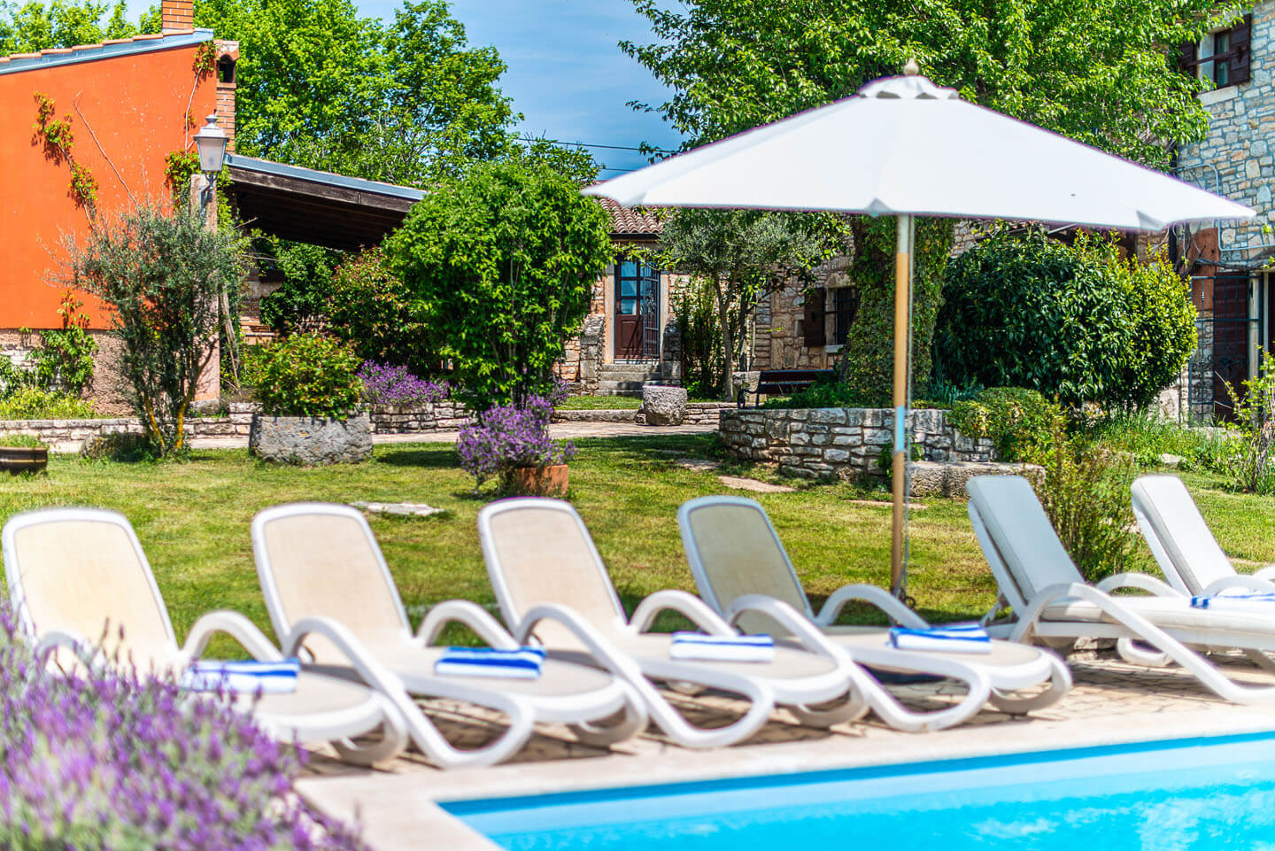 The large garden is dominated by a very old mulberry tree which is typical for old Istrian farmhouses. The garden is wonderful and has a nice and very large swimming pool 10 x 5 metres, and also a children's swimming pool. Around the pool is a sunbathing area provided with sunbeds, sun umbrellas and pool towels. There are several patios, covered terraces and a barbecue for outdoor dining. It is a paradise for families with children and for anyone who wishes to be in tranquillity but only 20 mins away from wonderful renaissance Venetian style towns and beaches.