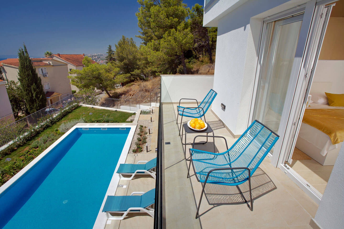 Large private villa with pool, Villa City Girl is located in the lively seaside resort of Podstrana, which is a part of the famous town of Split. It is a 10 bedroom villa in an urban area filled with residential houses and individual holiday homes and a 5 minute walk takes you to the local beach. The villa is arranged on three floors and has many balconies, and the sea view is enjoyed from many of the rooms. There is plenty of space as this Split holiday home spreads over 550 square metres of living space and a large pool measures 54 square metres.