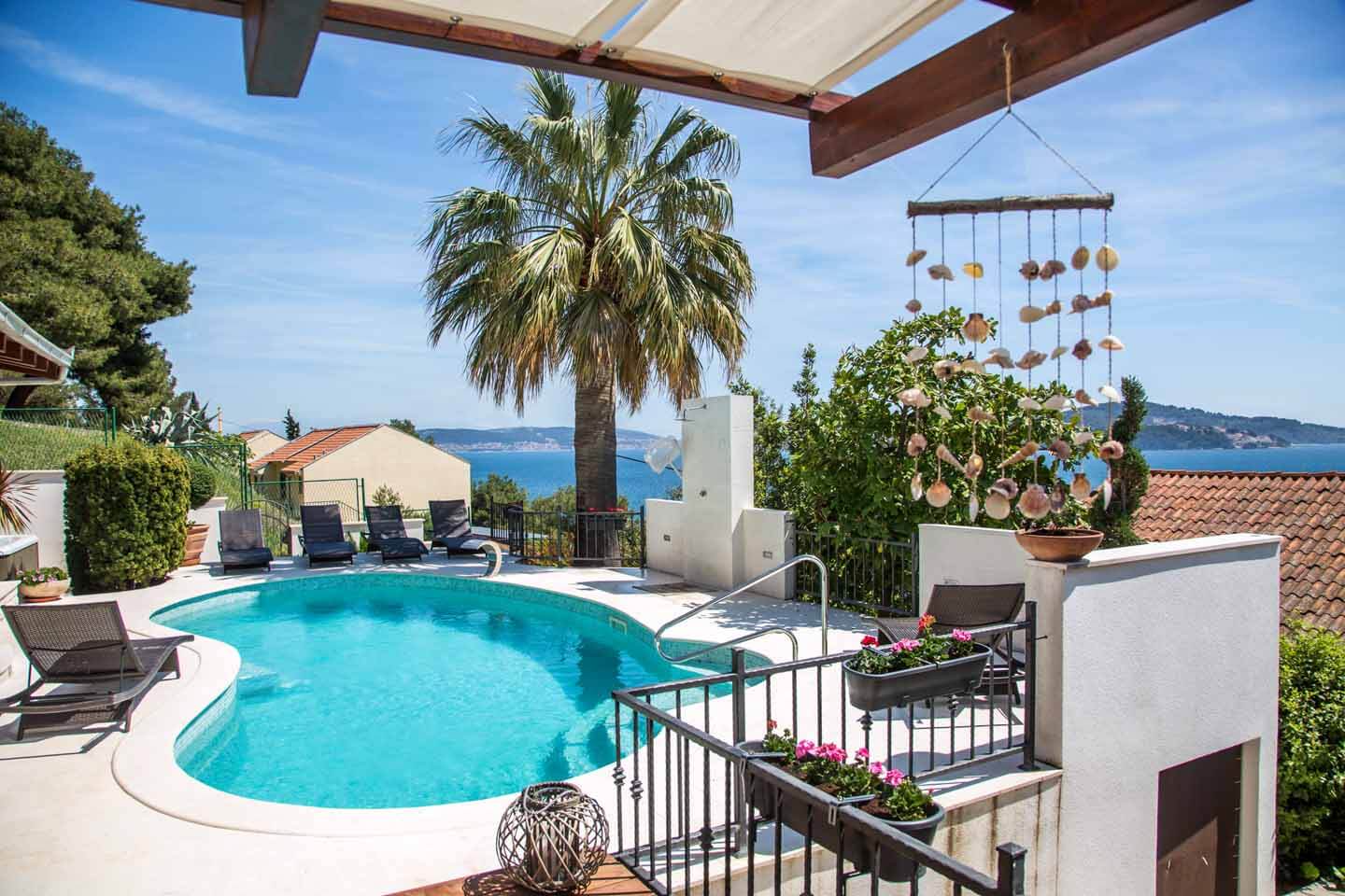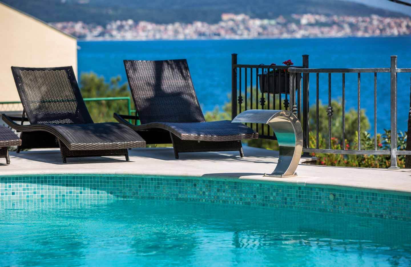 Villa Dawn is a modern, luxury villa, comprising of four spacious bedrooms and a living room, situated just sixty metres from a nice beach made up of pebbles and sand. There are lovely sea views from the house and garden, and the villa is designed for the outdoor life on the Adriatic. The sea is so blue, crystal clear and warm to swim in, and on top of that the pool is heated in the cooler months. The villa is in a quiet residential neighbourhood, but just a few hundred metres from shops, restaurants, cafes and a sports and wellness centre.