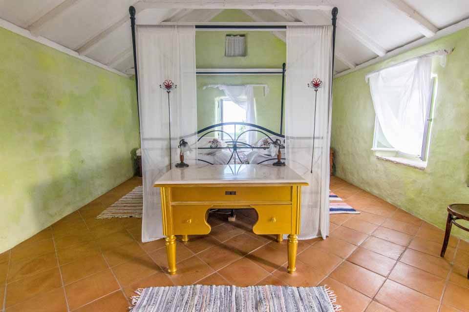 Studio villa two is a separate small cottage with a surface of 30m2. Inside walls are of attractive exposed stone, and there is a large double bed plus a bathroom with a bathtub.