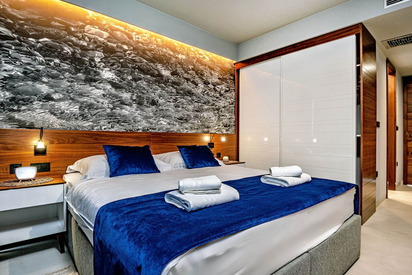 This luxury modern villa with pool is arranged over four floors and offers a generous living area, wellness spa, gym and a lot of outdoor space. Modern design and ultimate comfort are at the heart of this stunning holiday home, and from the upper floors you have the most amazing views of the sea. There is WiFi connection throughout and air conditioning in every room.